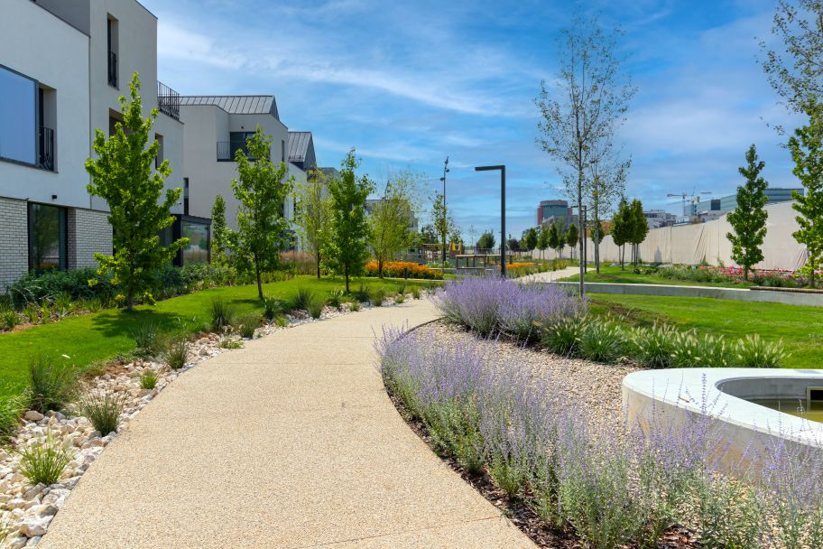 - Amenajările peisagistice în zona clădirilor T2, T3, T4 și T5 și a vilelor H10 – H16